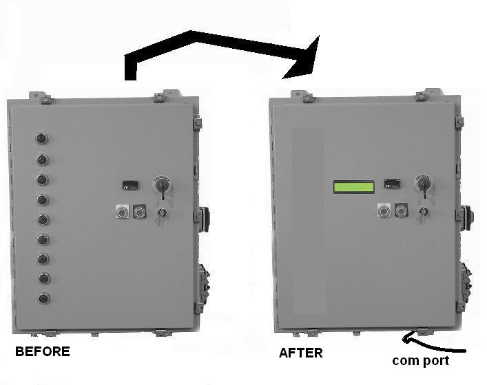 Replace and modify light bulb indicators on old control panels with LCD or HDMI displays. Also, adding a communication port using Ethernet IP or Modbus serial communication protocols will enable operators to do remote monitoring and data logging.
